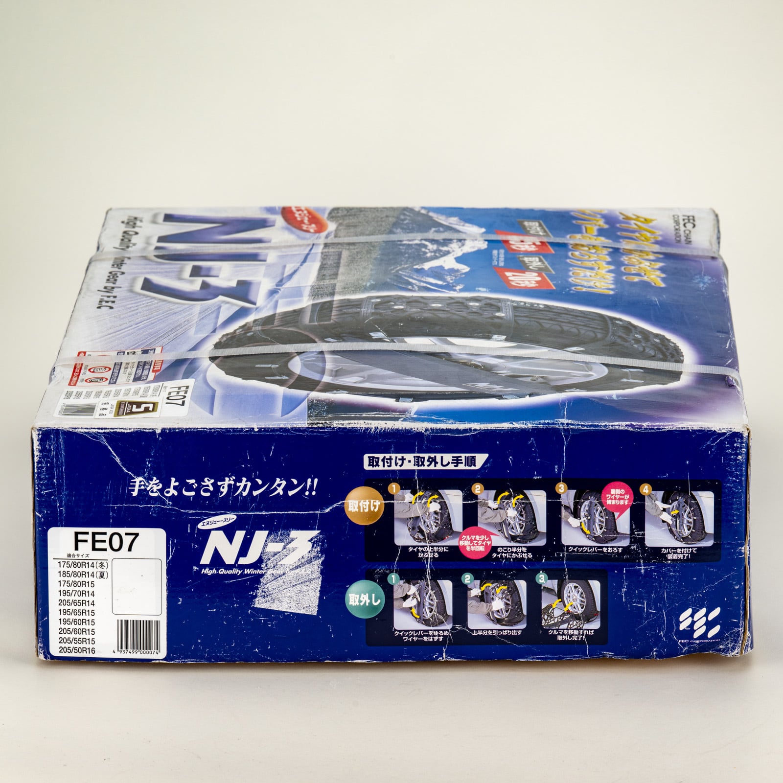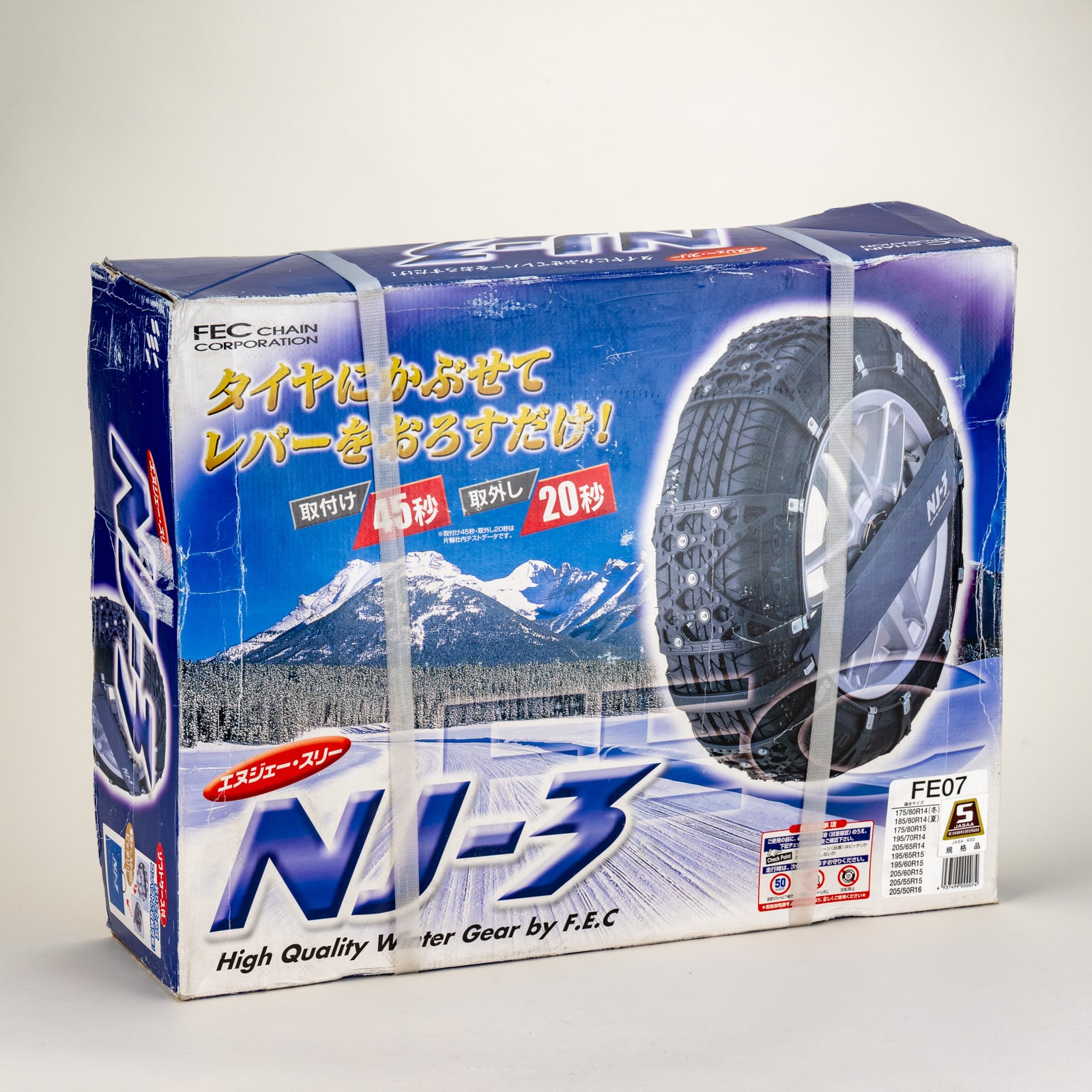 本品は、非金属タイヤチェーン「エヌジェースリー NJ-3 FE03 チェーン」です。厳選された素材を使用し、車両の安全性能を高めるために設計されています。
